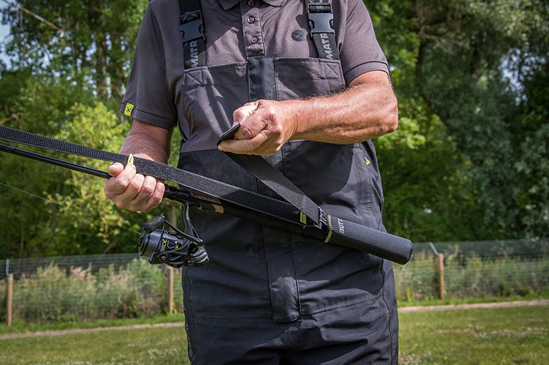 Matrix X-Stretch Top & Tail Rod Bands securely hold fishing rods during transportation, featuring stretchable fabric for added durability and flexibility.